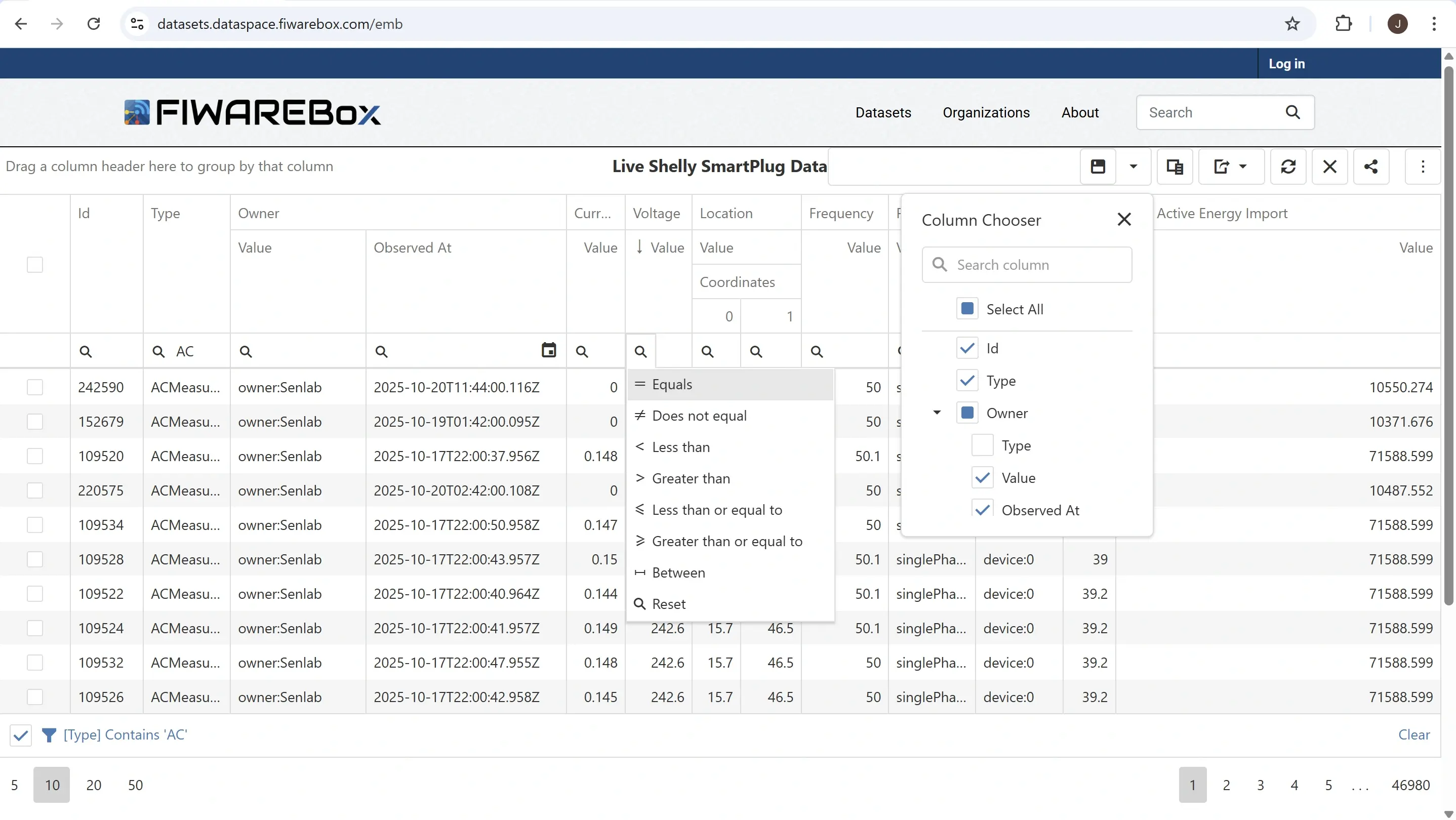 This layered approach lets you navigate huge datasets without losing orientation. You always know where the data came from (metadata) and what it contains (data). It’s also fully compatible with FIWARE Smart Data Models and NGSI-LD entities, meaning everything you see is structured, interoperable, and ready to flow into your applications or dashboards.