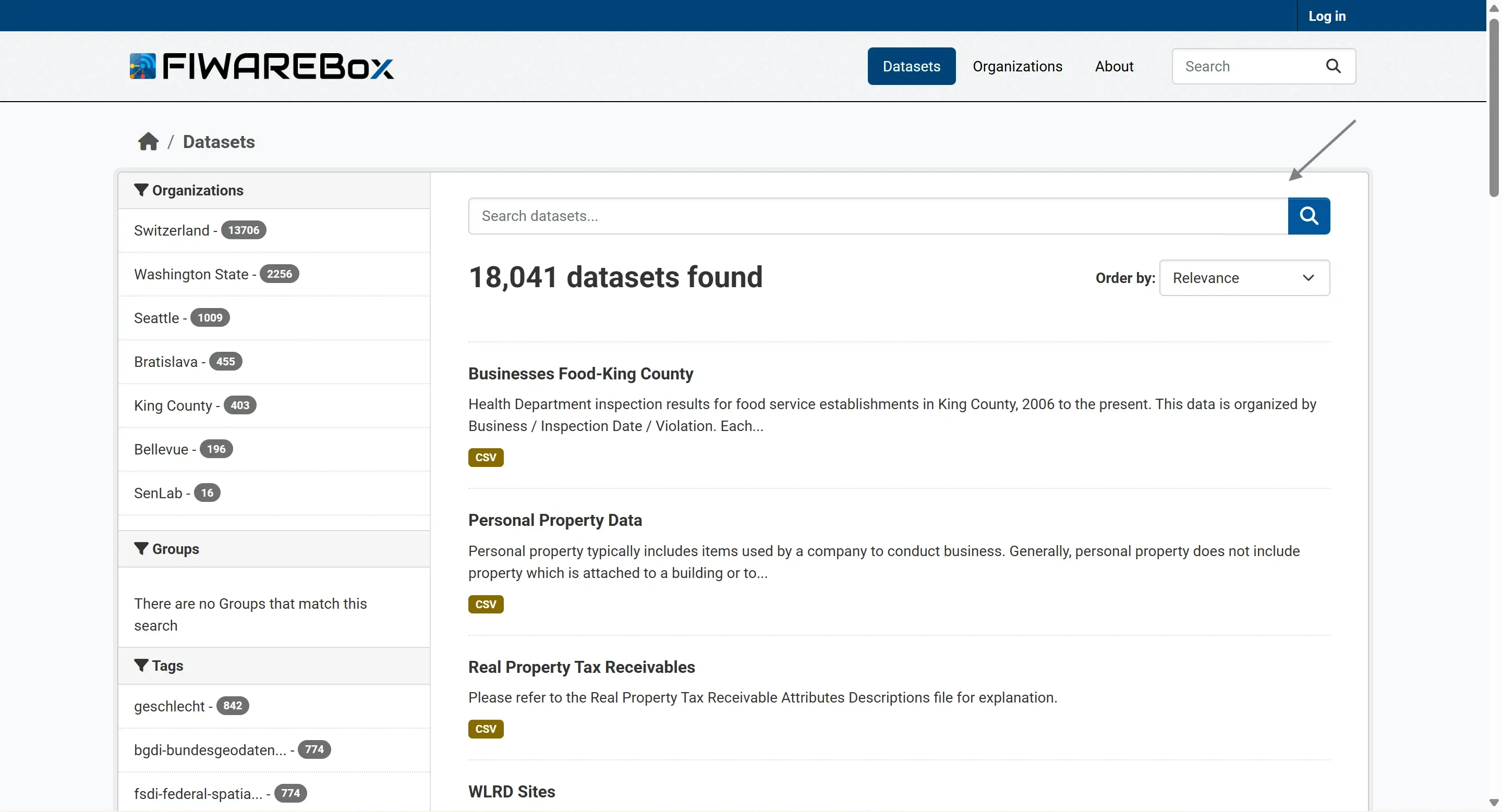 - It lets users search, filter, use custom filter, query, sort, group datasets by any metadata field (standard or custom).
